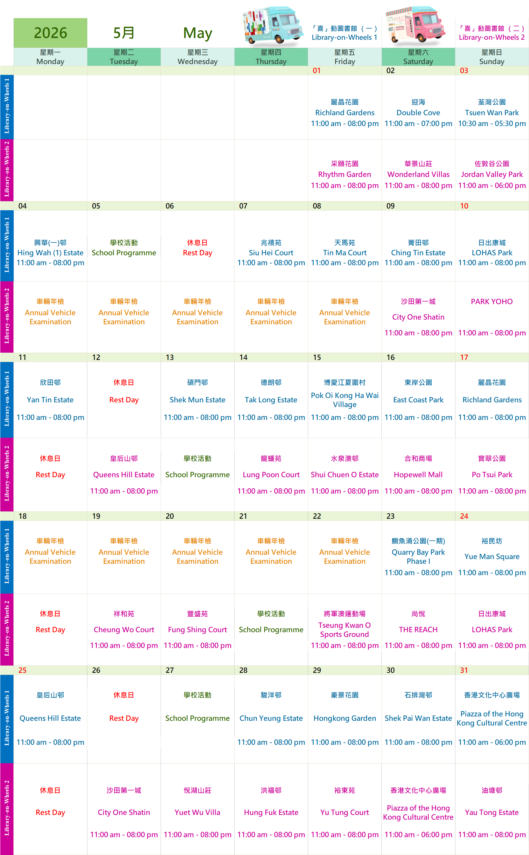 Library-on-Wheels Visiting Locations