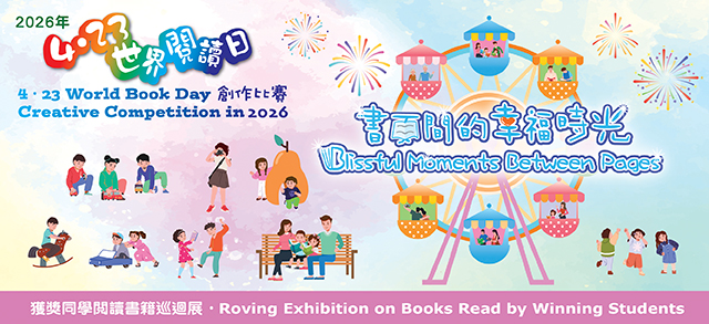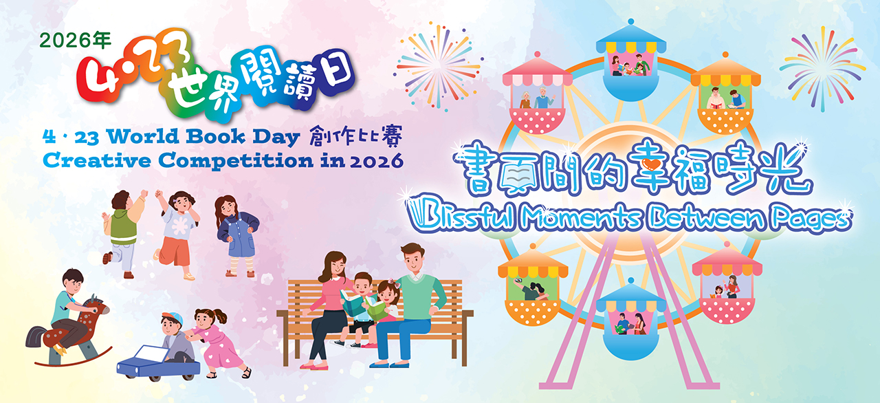 | 簡介: | 為響應4月23日「世界閱讀日」,推廣閱讀文化,香港公共圖書館以「書頁間的幸福時光」為主題,舉辦2026年「4.23世界閱讀日創作比賽」。我們期望藉着這項結合閱讀與創作的比賽,鼓勵兒童及青少年擴闊閱讀領域,深化閱讀層次,讓閱讀開啟知識大門,拓展視野,豐富人生。 |