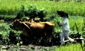 ![]() 客家農婦在東涌村趕牛耕作 A Hakka woman and her cow complete a rustic scene in the Tung Chung valley |